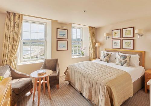 Ver las 15 fotos El Braye Beach Hotel se encuentra junto a la playa de Alderney, con vistas al océano. Cuenta con recepción 24 horas, restaurante, bar y cine privado. Todas las habitaciones disponen de baño con secador de pelo. Incluye albornoces, té/café, decantador gratuito de vino de Jerez y fruta fresca. El restaurante tiene vistas a la bahía y ofrece una amplia selección de menús. Los huéspedes también pueden comer, beber y relajarse en la terraza con vistas a la playa.