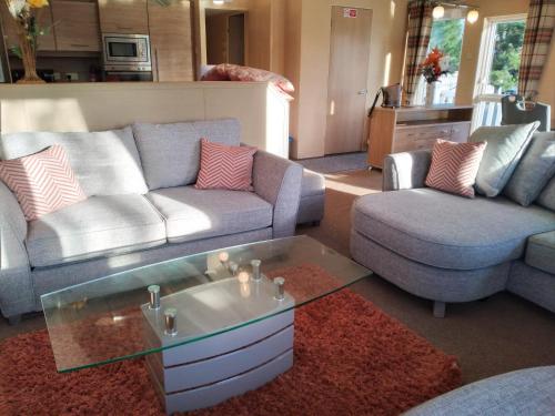 El Castle Lake Lodge se encuentra en Beal, en un parque galardonado. Este impresionante lodge se encuentra en una zona preciosa a orillas de un lago y ofrece vistas magníficas al lago. La casa tiene 2 dormitorios, uno de ellos con 1 litera y 1 cama individual. El dormitorio principal tiene 1 cama extragrande y baño con ducha, aseo y lavamanos. Ambas habitaciones tienen grandes vestidores. El baño principal tiene una ducha sobre la bañera, aseo y lavabo. Hay 2 camas plegables individuales adecuadas para niños. Estas camas se pueden mover en los dormitorios o en el salón. El lodge cuenta con cocina de planta abierta y zona de salón comedor. La zona de estar incluye TV de pantalla plana con reproductor de DVD y 2 sofás. La cocina es moderna y está bien equipada con lavadora, lavavajillas, nevera/congelador integrado, horno, fogones, microondas, hervidor de agua y tostadora. El lodge cuenta con ventanas de doble acristalamiento y calefacción central. Hay puertas que dan a una amplia zona de terraza amueblada. El Castle Lake Lodge está situado en un parque con una gran cantidad de instalaciones y actividades, como tenis, tenis minigolf, campo de golf de 9 hoyos, entrenamiento de golf, alquiler de bicicletas y karts, piscina y zona de ocio. El parque alberga muchos sitios para comer, como un restaurante de comida rápida y un restaurante pizzería. El parque también cuenta con tienda, licencia para vender alcohol, tienda de regalos, panadería y lavandería automática. Los pases de ocio se pueden adquirir en la recepción principal del parque, que da derecho a ver espectáculos y utilizar las instalaciones de pago. La estación de tren de Berwick-upon-Tweed está a 12 km y el aeropuerto internacional de Newcastle, a 91 km. La playa más cercana está a 1,6 km y las otras playas de Northumberland están cerca. El castillo de Alnwick, famoso por las películas de Harry Potter, está a 35 km. Seahouses es un bonito pueblo de pescadores situado a solo 25 km. El castillo de Bamburgh se encuentra a 20 km y Holy Island, a 9,9 km.
