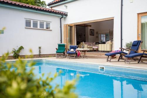El Vicarage House & Pool House es una casa situada en Great Hockham. Cuenta con piscina climatizada al aire libre de temporada, pista de tenis privada y sala de juegos cubierta. El establecimiento consta de 8 dormitorios y 6 tvs. La casa cuenta con 2 terrazas al aire libre con barbacoa y asientos donde los huéspedes pueden disfrutar de comidas al aire libre. También hay otras 2 terrazas. El Vicarage House también cuenta con 2,4 hectáreas de jardines paisajistas donde se puede jugar a juegos de jardín, como petanca y croquet. El parque forestal de Thetford está a 200 meters y ofrece rutas de ciclismo y senderismo. El establecimiento cuenta con 9 bicicletas para adultos y 4 bicicletas para niños. El establecimiento se encuentra a 14 km de Thetford, a 38 km de Norwich y a 34 km de Bury St Edmunds. El aeropuerto más cercano es el aeropuerto internacional de Norwich, a 40 km del alojamiento.