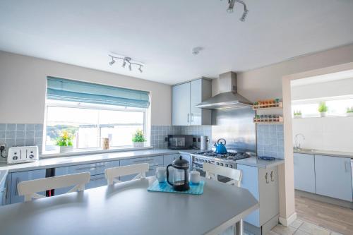 Situated a 30-minute walk from Newquay town centre, the The Ravensbury holiday let offers free private parking and sea views. The Property is just 5 minutes’ walk from Fistral Beach. The rooms at the Ravensbury feature an en suite bathroom and a flat-screen TV. Most rooms boast fabulous views of the sea. Hairdryers are available upon request. Set in an Area of Outstanding Natural Beauty, the The Ravensbury holiday let is ideal for outdoor pursuits such as golfing and surfing. The house offers secure storage for bikes and surf boards. Newquay Airport is 5 miles away. This is a large 3 storey semi detached house with amazing sea views to the front of the house and views across the river Gannel and fields beyond. As you enter the property you come into a front porch and through to the hallway to the left its a large sitting area enough comfortable seating for 16 people with Television and sea views. Coming out of the living room on the left is a dining area suitable for 16 people with patio access to outside seating. Through the dining room you can access the kitchen. Car parking is available at the back of the property.