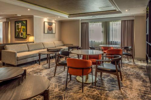 Situated 18 miles from central London, Hilton Watford offers a gym and free parking. The M1 is a 3-minute drive away, and central Watford can be reached in less than 10 minutes by car. The hotel’s gym has cardiovascular equipment and a selection of free weights. Each modern room at Hilton Watford Hotel has 24-hour room service, a TV with cable channels, and facilities for making tea and coffee. Jaime's Restaurant serves breakfast and dinner daily and offers an à la carte menu, and The Patio Bar has a widescreen TV and serves a range of snacks throughout the day. The hotel is 20-25 minutes' drive from Wembley Stadium and a 7-minute drive to Warner Brothers Studio. Rail and Tube links are nearby, offering access to London in 45 minutes.